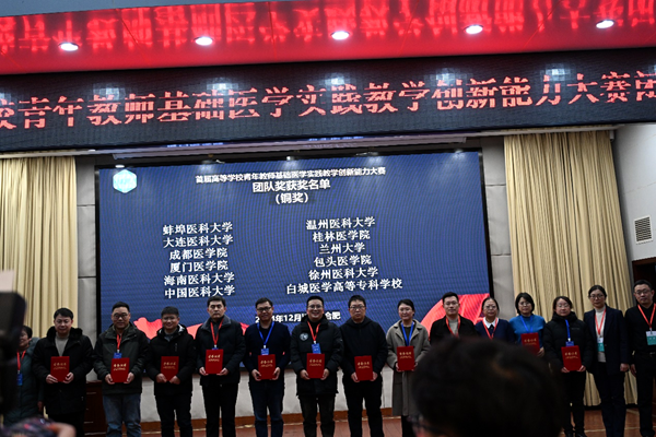 近日,首届高等学校青年教师基础医学实践教学创新能力(基础医学实验技能专项)大赛”在安徽医科大学落下帷幕。公司基础医学实验教学中心杨拯教授担任领队,带领陈环宇徐艳张先琴荣成4名教师参加比赛,获得形态组“铜奖”1项、机能组“铜奖”1项公司获得团体“铜奖”1项
