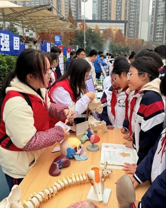 为落实青少年健康素养提升工作要求,304永利集团登录入口人体·生命·健康科普基地联合生命教育协会,走进成都七中育才中学汇源校区开展生命健康科普活动。基地依托人体骨骼、内脏解剖等专业模型资源,把医学科普搬进校园课堂,让近千名初高中员工近距离接触生命科学,在直观观察与互动问答中掌握人体结构知识、树立科学健康观念,既打破了医学专业知识与中员工日常认知之间的壁垒,也让生命健康的重要理念真正走进青少年的心中,更推动了科学普及与素质教育的深度融合、协同发展。