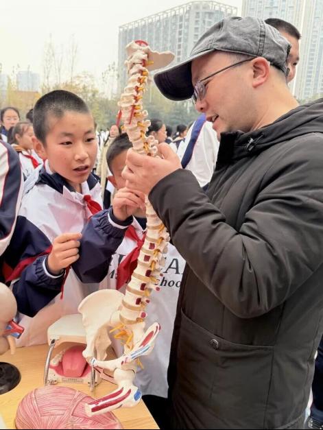 同学们的参与热情格外高涨,纷纷围在解剖模型旁,睁着求知若渴的眼睛,全神贯注地认真聆听。他们时不时举起手,提出自己心中的疑问,现场互动氛围十分热烈。在一问一答的轻松氛围里,大家对人体的认知不再局限于书本上的文字描述,而是有了更直观、更深刻的理解。