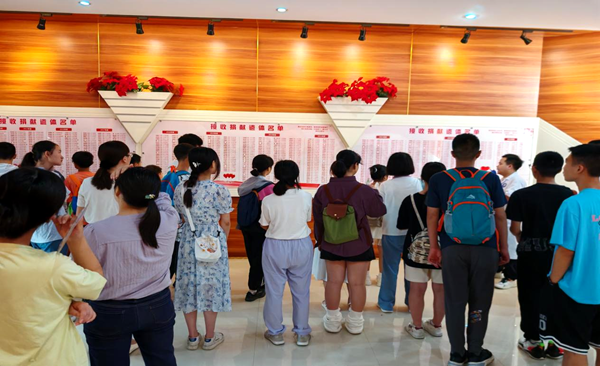 在感念堂中,900多位捐献者的名字,深深震撼了青少年们,在了解到捐献者其中既有104岁的老人,又有仅出生4天的婴儿,教师、医生、公务员……甚至还有成医的员工。这无私大爱,让这些懵懂的少年们,默默矗立,久久无言。