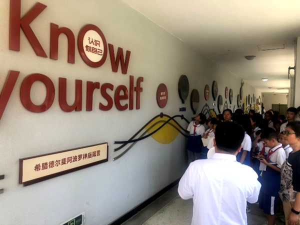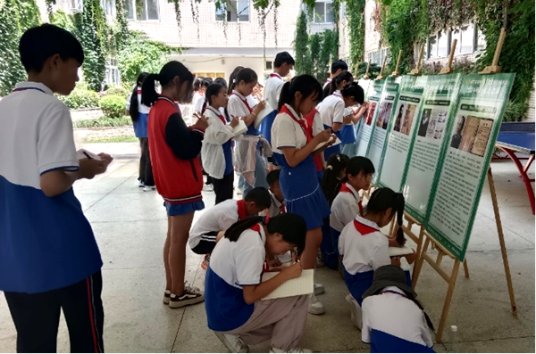 同学们在基地雍清渊老师的带领下步入大厅,了解了顾方舟等医学大师生前事迹,用心体会科学家们献身医学的奉献精神;大家接着来到设计独特的“馨香园”,在聆听讲解后,获知9米多长的铜带浮雕中潜藏的生命科学,感悟无字石碑背后的超然豁达。