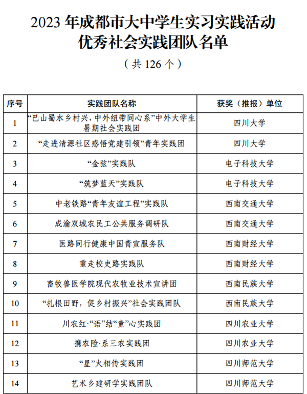 近日,共青团成都市委、市委宣传部和市教育局等八个部门联合发文,对2023年成都市大中员工实习实践活动先进典型进行表扬通报。公司生命教育协会获评2023年成都市大中员工实习实践活动优秀社会实践团队,304永利集团登录入口人体解剖学教研室聂政老师获评2023年成都市大中员工实习实践活动优秀指导教师。