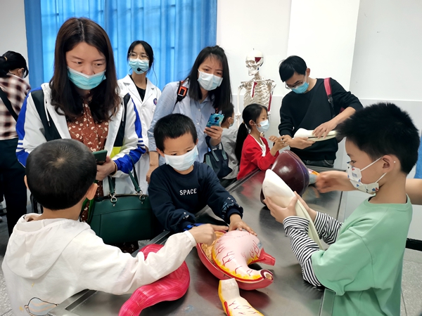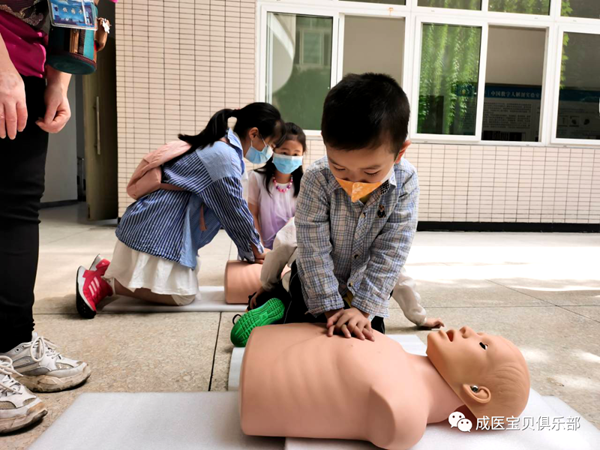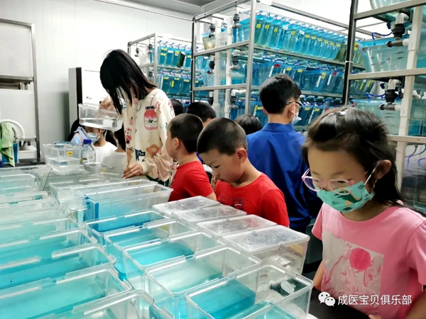 志愿者面向孩子们演示了三角巾的头部包扎方法和心肺复苏的相关机能。小朋友们还参观了发育与再生四川省重点实验室鱼房,探索神经科学奥秘,进一步提升了科学兴趣。