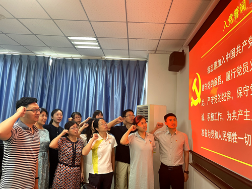 活动现场,支部书记唐瑜同志带领全体党员在鲜红的党旗下,举起右拳重温入党誓词,铿锵的誓言表达了同志们对党的忠诚和为共产主义事业奋斗终生的坚定决心。党员同志们畅谈了入党时的难忘经历,并结合自身成长经历,回顾了中国共产党百年光辉奋斗历程,更加坚定了听党话、跟党走的信念信心。有党员表示,“又一次感受到大学申请入党时澎湃激动的心情,很有纪念意义!”