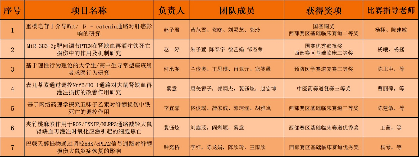 公司杨拯、陈建敏老师指导的作品《重楼皂苷Ⅰ介导Wnt/β- catenin通路对肝癌影响的研究》获得了全国总决赛铜奖。杨曦、杨拯老师指导的作品《MiR-383-3p靶向调节PTEN在肾缺血再灌注铁死亡损伤中的作用及机制研究》入围大赛壁报展示并获得了全国“优秀壁报展示奖”。